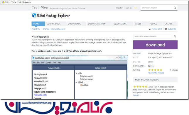 رفتن به https://npe.codeplex.com/ و دانلود NuGet Package Explorer.