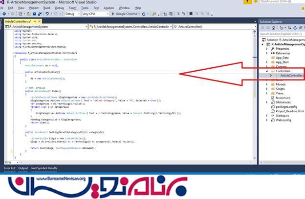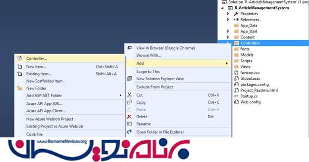 حال ، به سراغ ایجاد Controller ها میرویم . برای این کار روی فولدر Controoler کلیک راست کرده و Add Controller را بزنید و نام آن را ArticleController.cs بگذارید :