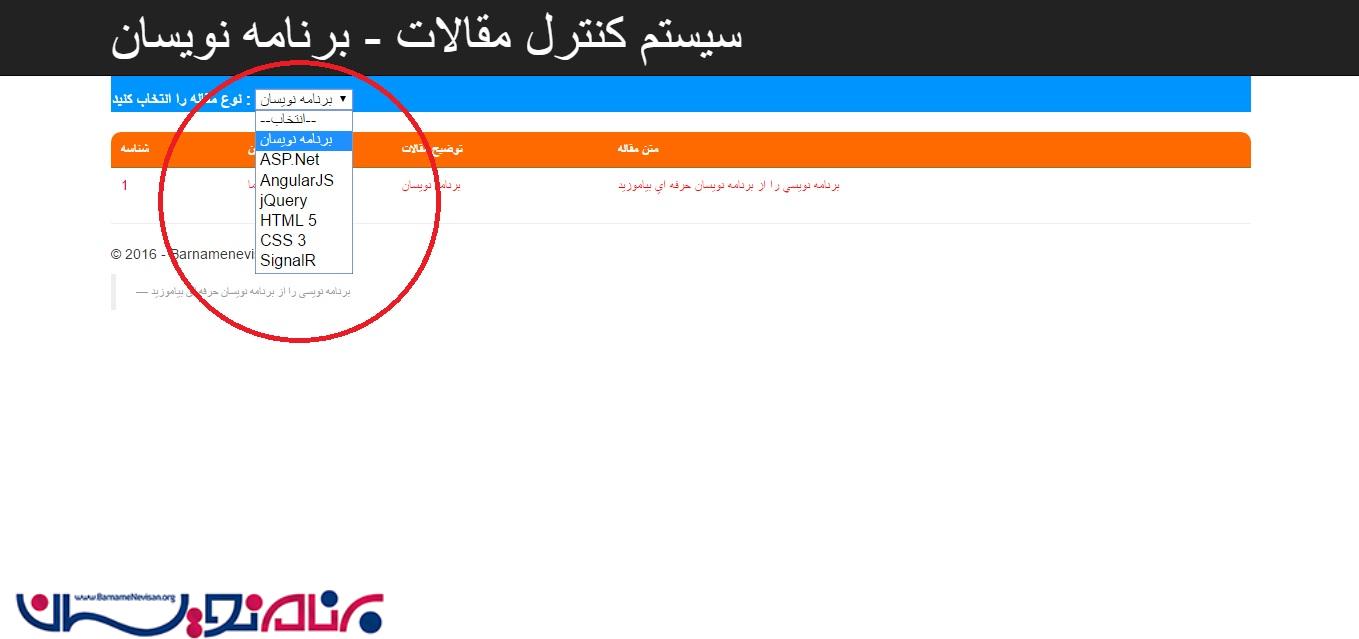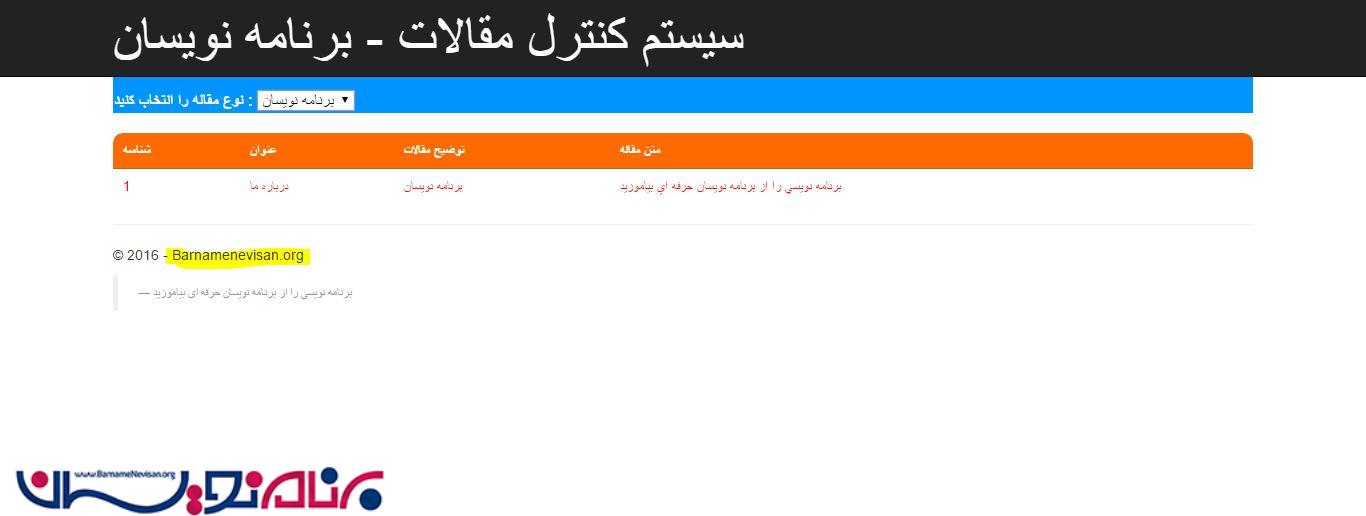 مدیریت سیستم مقالات در MVC