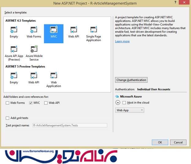در این برنامه از Template MVC استفاده خواهیم کرد :