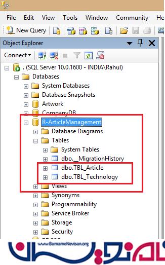 بعد از اجرا ، این پایگاه داده و جداول را در SQL Server database ایجاد خواهد کرد .