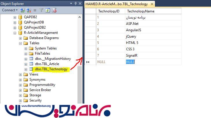 همانطور که گفتیم ، ما از Code First استفاده خواهیم کرد . پس ، دیگر نیازی به ایجاد پایگاه داده نمیباشد . زمانی که شما برنامه را اجرا کنید ، این بصورت خودکار آن را ایجاد خواهد کرد .