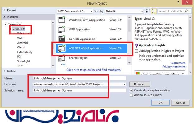Visual Studio را باز کنیم و یک پروژه جدید Web Application ایجاد کنید :