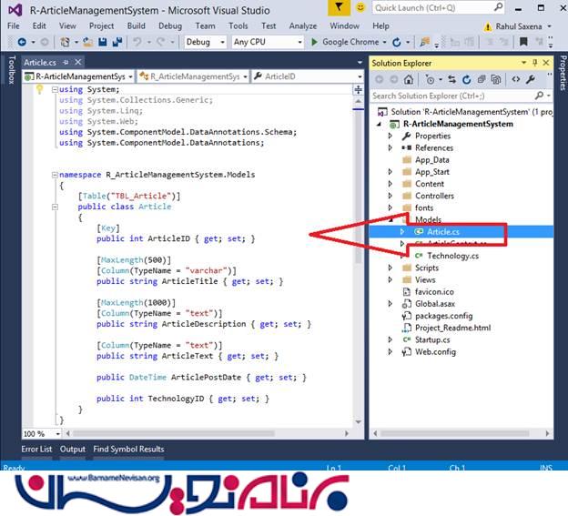 دوشنبه 17 آبان 1395در این مقاله با استفاده از ASP.Net MVC سیستم مدیریت مقالات را بررسی خواهیم کرد . در این سیستم ، کاربر توانایی ارسال مقاله ، دیدن تمام مقالات و اضافه کردن یک تکنولوژی جدید را دارد . در این مقاله ما فقط در مورد دیدن تمام مقالات توسط کاربر مطالبی را ارائه خواهیم داد . در این مقاله ما از Code First استفاده خواهیم کرد . در ادامه بصورت مرحله به مرحله به بررسی آن خواهیم پرداخت :