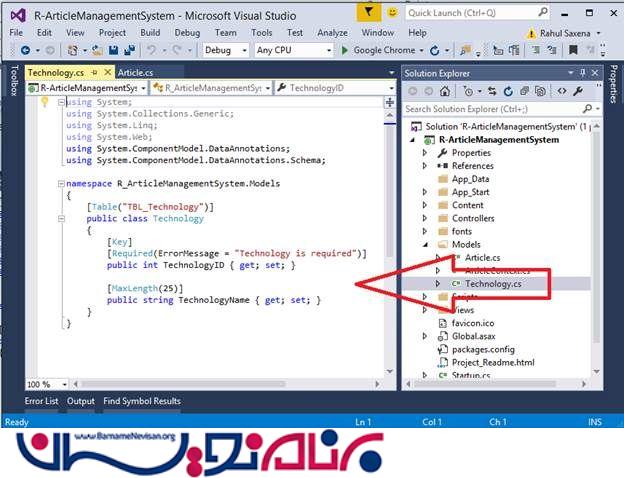 بعد از این ، یک کلاس دیگر با نام Technology.cs به فولدر Models اضافه کنید و کدهای زیر را در آن بنوسید :