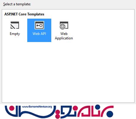 یک پروژه جدید از نوع ASP.NET Core ایجاد کنید و در قسمت Template ، Web API را انتخاب کنید.