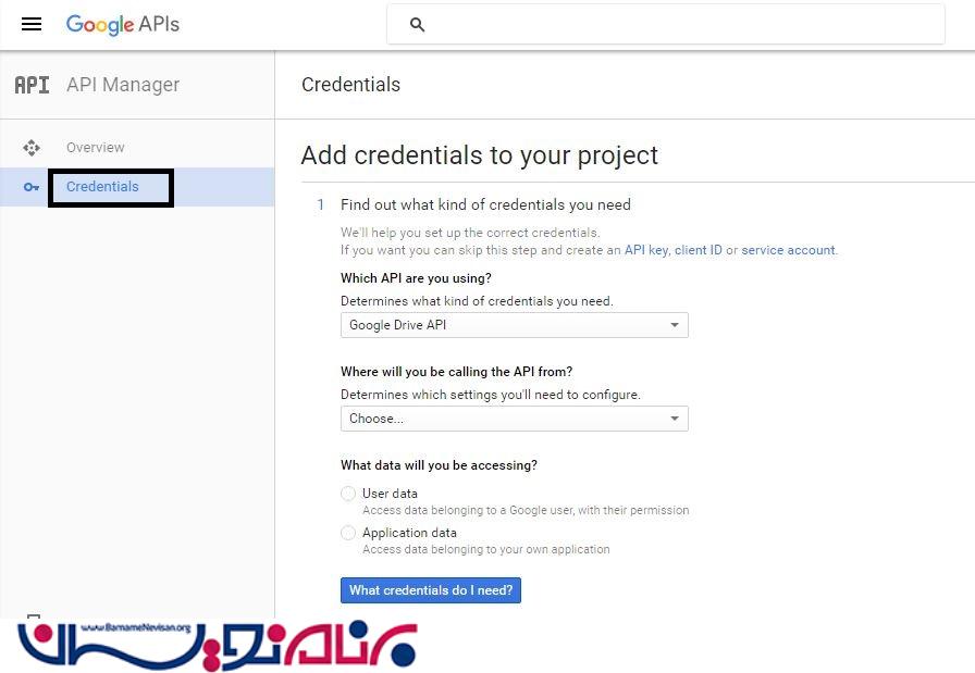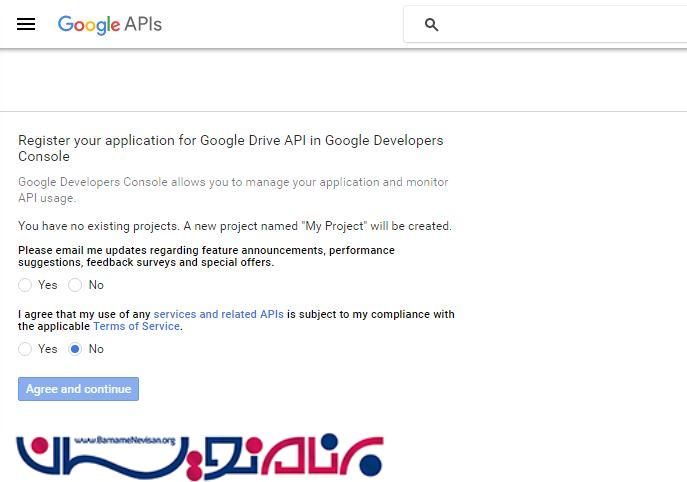 اول از همه، ما نیاز به ثبت برنامه خود در Google drive داریم که برای این کار نیاز به ساخت یک پروژه جدید روی این لینک داریم.