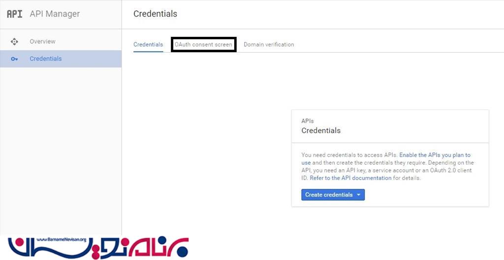 این شما را به دنبال کردن UI میبرد. روی ‘OAuth content screen’ کلیک کنید.