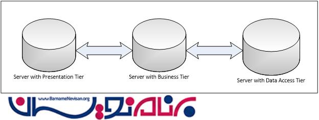 2. برنامه های بزرگ ممکن است که دارای هر سه لایه ی Presentation ، Business و Data Access باشند و هر کدام ازاین لایه ها بر روی ماشینی جداگانه اجرا شود .