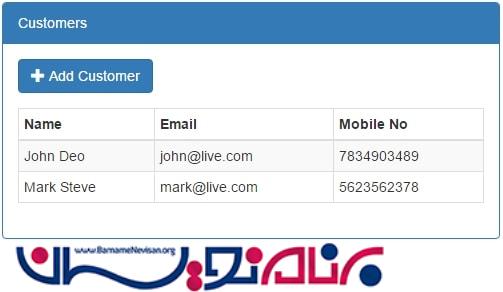 زمانی که برنامه اجرا شود اکشن Index فراخوانی می شود . سپس لیستی از Customerها در قالب یک جدول نمایش داده می شود.