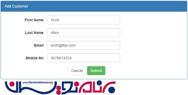حال Partial View به نام Add Customer تعریف کرده و کد های زیر را وارد آن کنید .