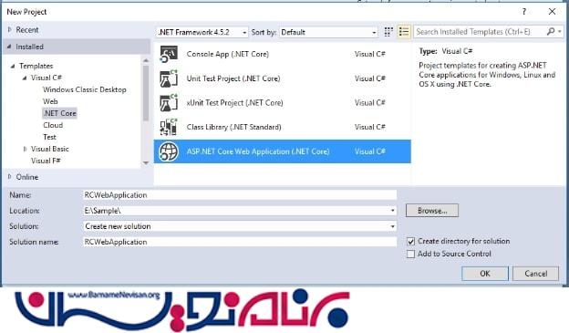 تا این قسمت از کار ویژوال استودیو را به همراه .NET Core نصب کرده ایم. حال میتوان یک برنامه از نوع ASP.NET Core ایجاد کنیم. برای این کار مراحل زیر را دنبال کنید: