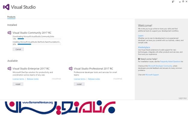 بعد از دانلود Visual Studio فایل exe را اجرا کنید و سپس صفحه زیر را مشاهده می کنید.