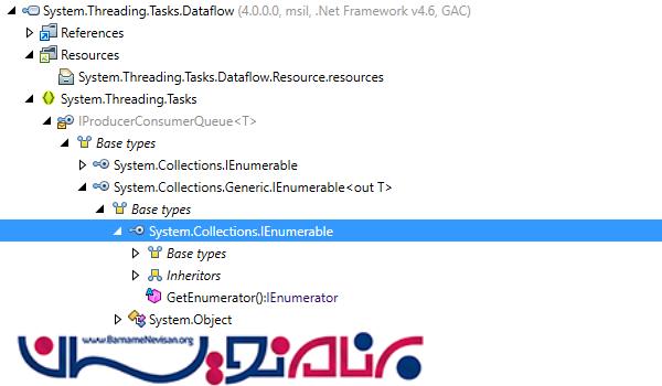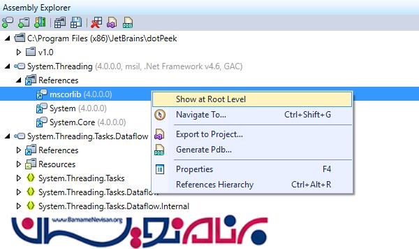 • برای مثال ، ما system.threading.dll را decompile کردیم . این فایل dll. دارای یکسری ارجاع ها میباشد که ما به کمک dotPeek میتوانیم آن را مشاهده کنیم .