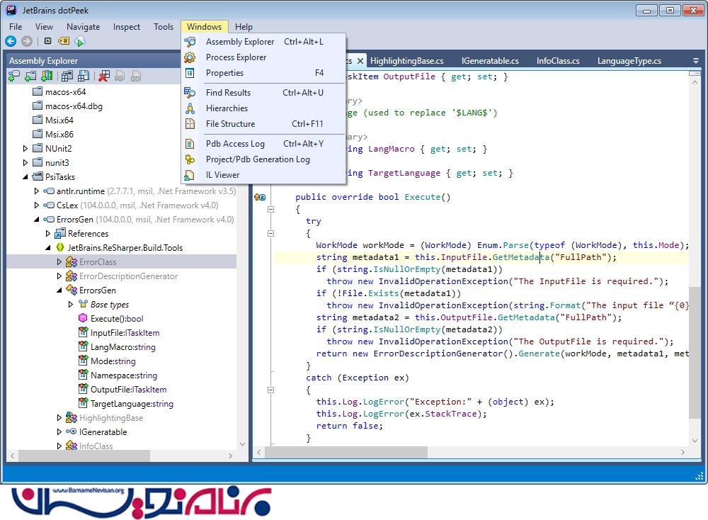 • ابزار dotPeek توسط Microsoft ارائه شده است .