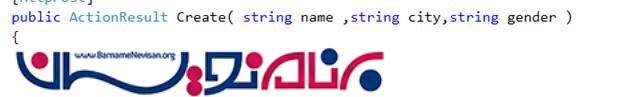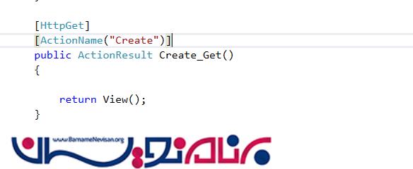 زمانی که ما قصد داریم اطلاعاتی را پست میکنیم ، ما نیاز به یک فرم و این چیز ها داریم که اطلاعات را در آن وارد کرده و ارسال کنیم . برای این کار یک متد دیگر Create داریم که از نوع GEt است . نام آن را نیز همانند زیر تغییر میدهیم .