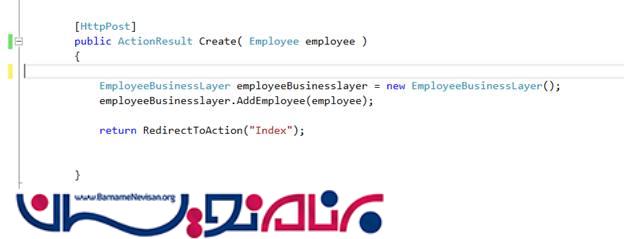 به جای قرار دادن یک شی از Employee به عنوان پارامتر ورودی متد Create ما یکسری پارامترهایی را قرار داده ایم . که دلبخواه است شما میتوانید یک شی از Employee را به آن پاس دهید .