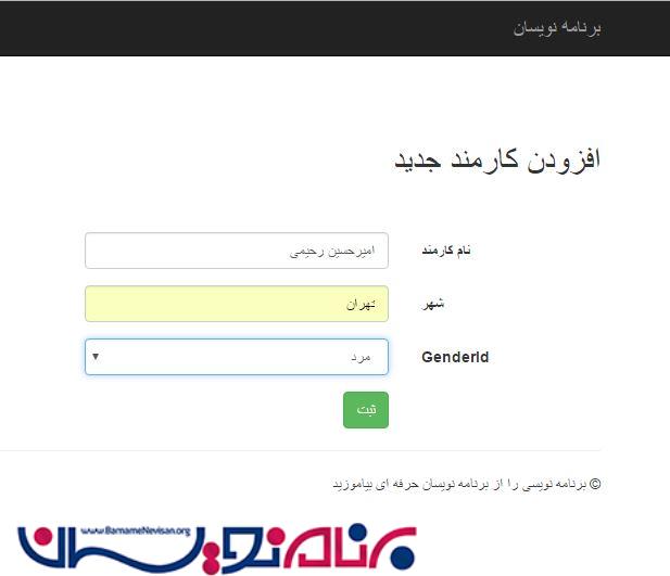 در اینجا اگر ما روی دکمه ثبت کلیک کنیم ، اطلاعات وارد شده به سرور پست خواهد شد و پارامترهایی -که در تصویر زیر مشاهده میکنید - داده های خود را دریافت میکنند :