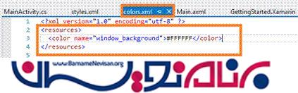 گام 4 - در این مرحله، نیاز داریم تا یک فایل XML اضافه کنیم. نام این فایل را colors.xml می گذاریم.