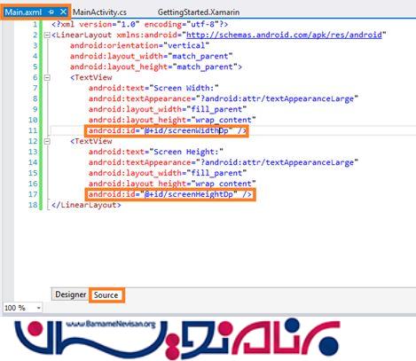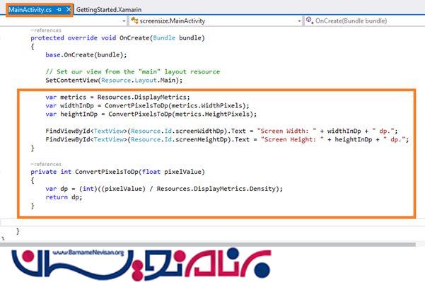 حالا به صفحه ی MainActivity.cs بروید و کدهای زیر را در متد OnCreate() وارد نمایید.