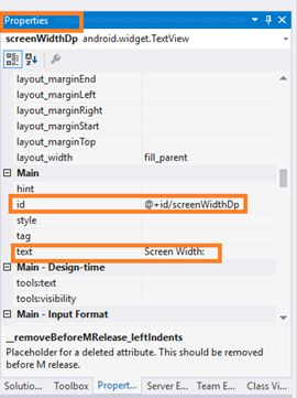 FindViewById < TextView > (Resource.Id.screenWidthDp).Text = "Screen Width: " + widthInDp + " dp.";