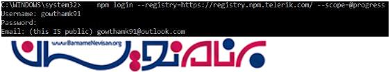 برای انجام این فرآیند ، ما باید یک حساب Telerik داشته باشیم . دستورات زیر را اجرا کنید .