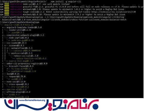 قبل از اضافه کردن مولفه ها ، نیاز است ما پکیج Angular-CLI را نصب کنیم . این کار را میتوانید با اجرای دستور زیر انجام دهید .