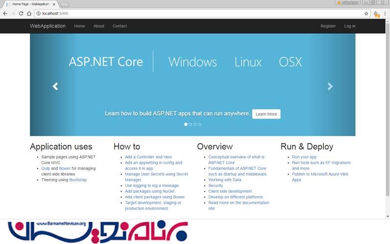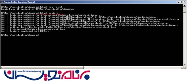 بعد از نصب ما در وهله اول یک ASP.NET web application با استفاده از (Command Line Interface (CLI میسازیم.