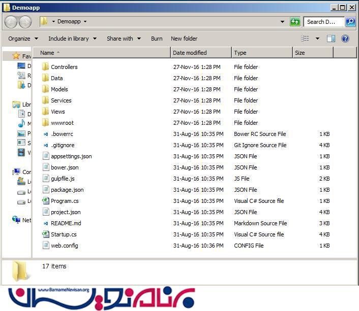 حال فولدر “Demoapp” را باز کنید و ببینید که چه چیزهایی تولید شده اند.