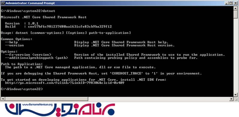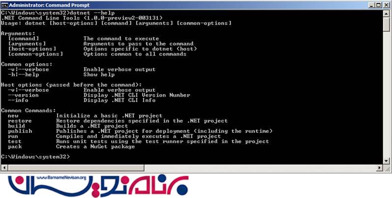 در Command Prompt دستور “dotnet” را وارد کرده و سپس Enter را بزنید.
