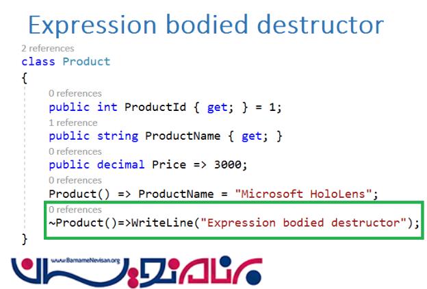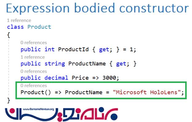 در 7.0 #C ما میتوانیم یک Constructor تحت عنوان expression bodied members داشته باشیم . به کد زیر توجه داشته باشید .