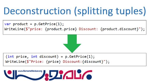 ما میتوانیم این را بیان کنیم که Deconstruction برای استفاده مستقیم از اعضای tuple با استفاده از نامشان وجود دارد .