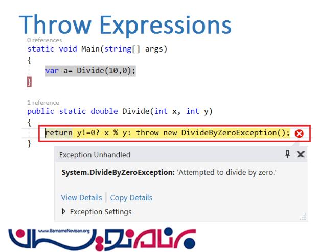 در 7.0 #C ما قادر هستیم که بصورت مستقیم یک exeption ایجاد کنیم . این exeption میتواند بوسیله ی یک عبارت ایجاد شود .