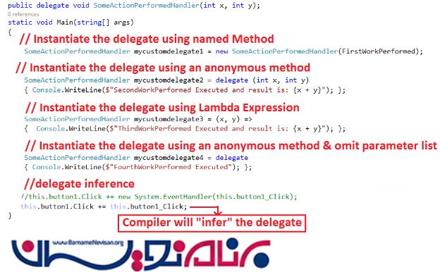 در زیر تصویری مربوط به متد های ناشناس و جملات lambda مشاهده میکنید .