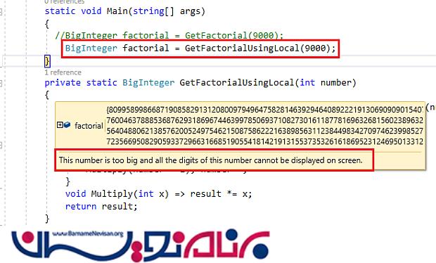 حال تابع محلی را برای محاسبه فاکتوریل 9000 فراخوانی میکنیم :