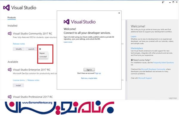 هنگامی که شما ویژوال استودیو با ورژن های قبلی را باز شده بر روی سیستم خود داشته باشید ، هنگام نصب با error رو به رو میشوید.