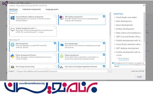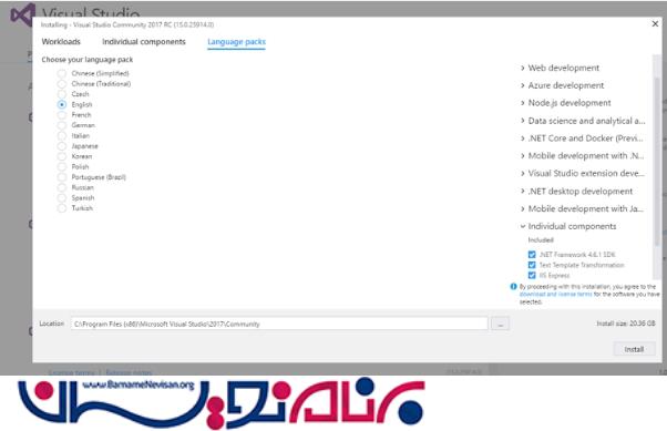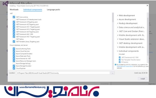 ما اینجا ویژگی چک زدن و چک نزدن موارد مورد نیاز برای نصب را داریم که هرکدام را که بخواهیم را نصب میکنیم.