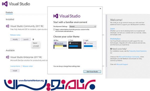 Visual Studio Community 2017 RC یک نسخه رایگان است.