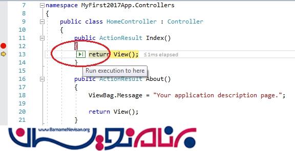 به سادگی ، بر روی آیکون کناره خط debugg برای اجرای آن خط کلیک کنید