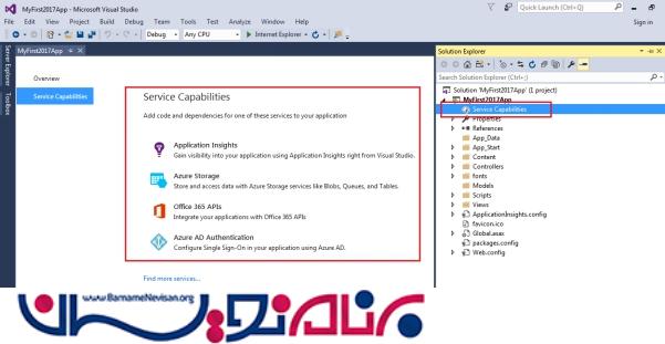 در solution باز شده با ایتم جدید Service Capabilities روبه رو میشویم.