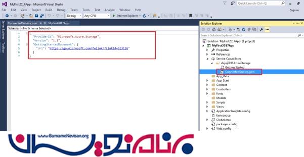 حال،این با storage ما وصل میشود و یک فایل ConnectedService.json ساخته میشود اینجا .