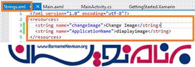 در این مرحله، صفحه ی String.xml را باز کنید. برای این کار باید به مسیر Solution Explorer-->Resource-->values-->String.xml بروید.