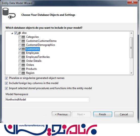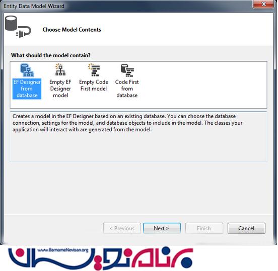 سپس Entity Data Model Wizard بعد از انتخاب EF Designer database باز خواهد شد.