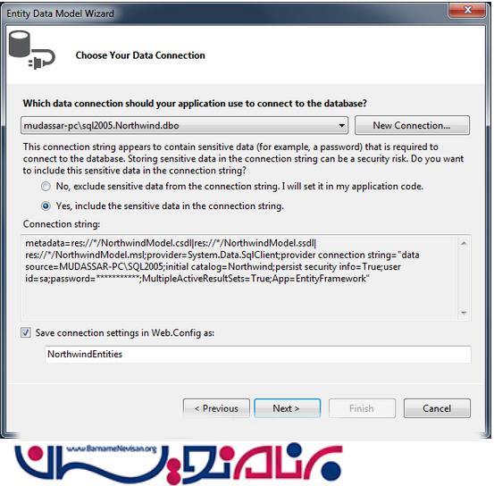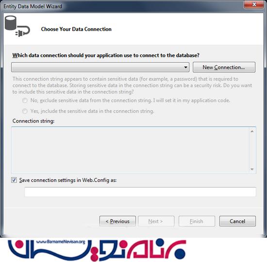 حال رشته ی اتصال به پایگاه داده را در Connection String میپرسد.