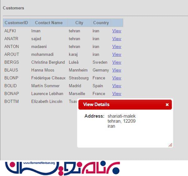 نمایش جزییات Gridview در Popup با استفاده از jQuery