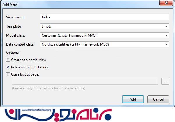 در درون view در خط اول Customer Entity را به عنوان IEnumerable تعریف کرده ایم.