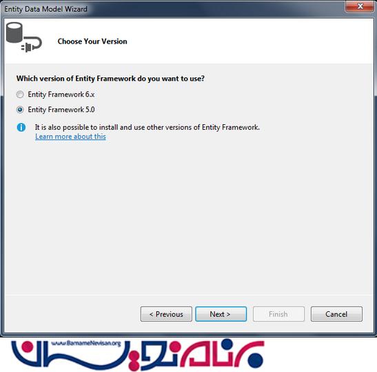 در اینجا شما یاید نسخه Entity Framework خود را انتخاب کنید.