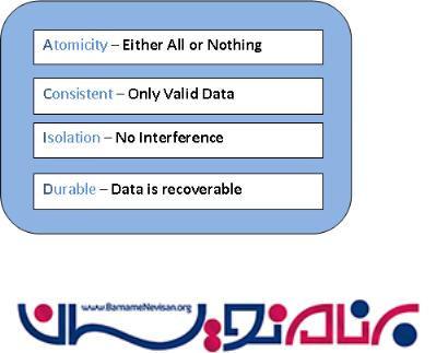 Atomicity : تضمین می کند عملیات در این کار با موفقیت انجام میشوند اگر این عملیات لغو شوند به حالت قبلی خود رول بک میکند.