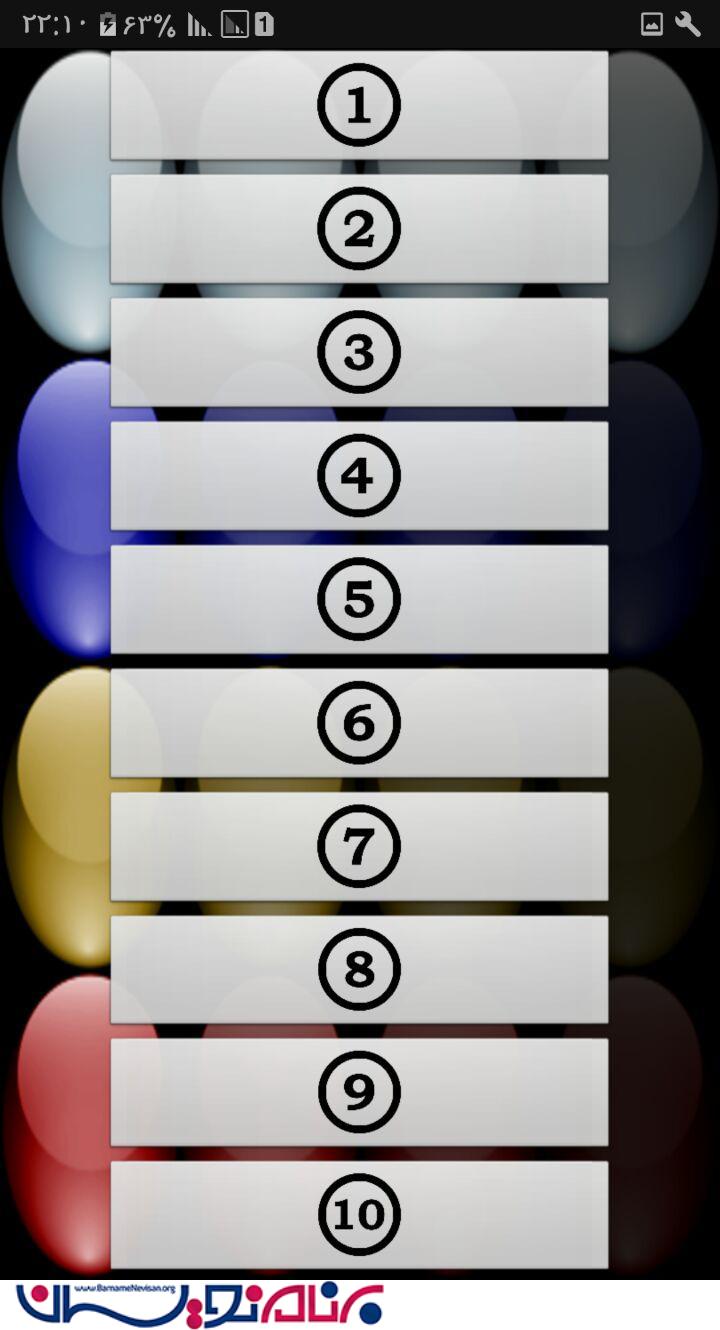 در مرحله اول زمانی که بازی را اجرا کنید مرحله های بازی برای شما نمایش داده می شود به صورت زیر: