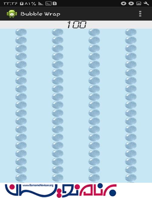 ابتدا در مورد طراحی این اپ بگم که شما از یک گرید ویو برای قرار دادن آیتم ها استفاده می نمایید و داخل پوشه ی drawable از چند تا عکس استفاده می شود زمانی که حباب سالم است از عکس حباب سالم استفاده می کنید و زمانی که حباب را ضربه زدید از حباب که خراب شده است استفاده می کنید یعنی در وافع داخل گرید ویو ها از Imageview استفاده می کنید که با زدن هر کدام عکس تغییر می کند.